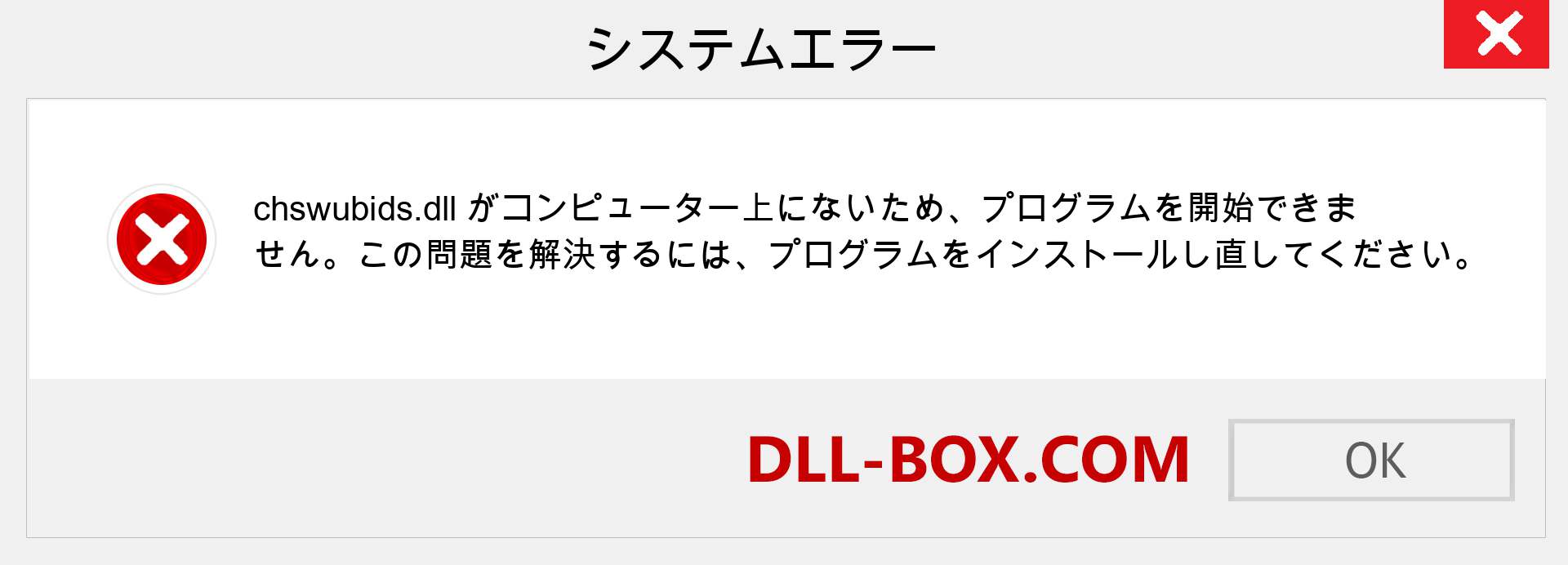 chswubids.dllに関連するエラーは、いくつかの異なる理由で発生する可能性があります。 たとえば、障害のあるアプリケーションchswubids.dllが削除または置き忘れられ、PCに存在する悪意のあるソフトウェアまたは破損したWindowsレジストリによって破損しています。